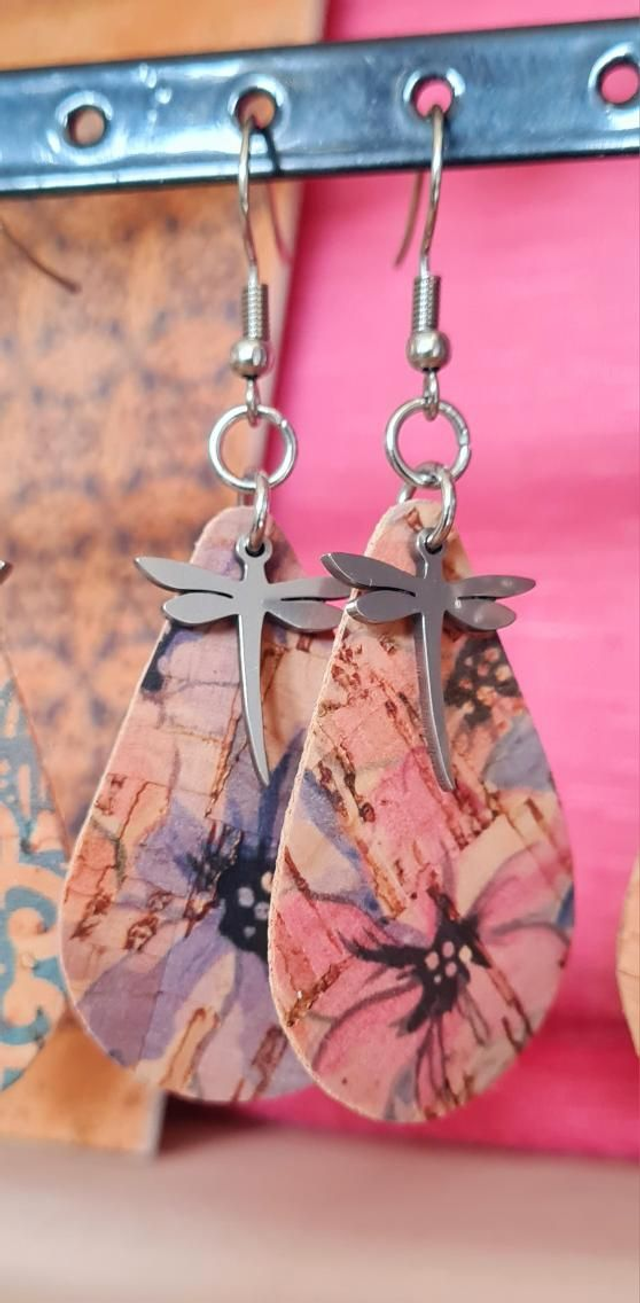 Boucles d'oreilles "goutte" en tissu de liège imprimé