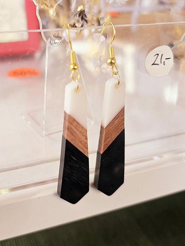Boucles d'oreilles "Fer de lance" en tissu de liège + acier