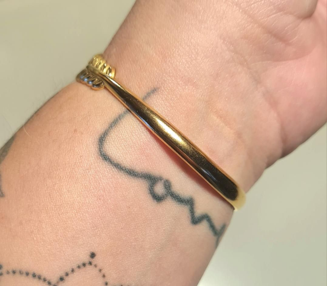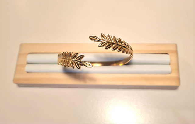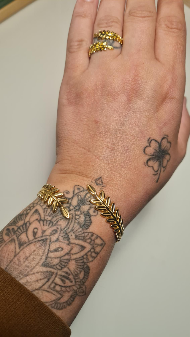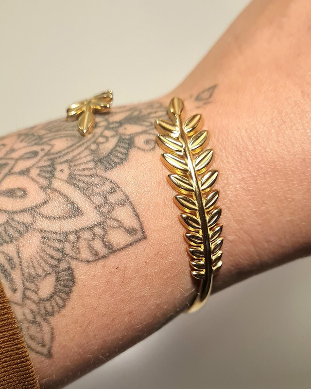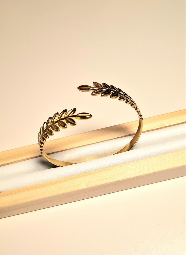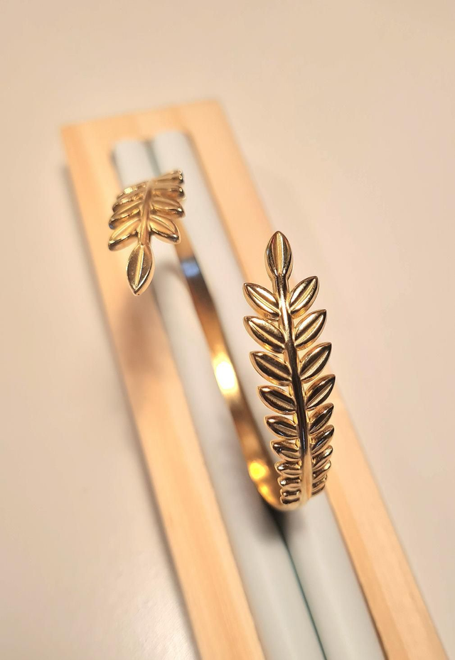 Bracelet/jonc "feuillage" en acier inoxydable or