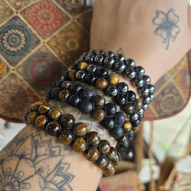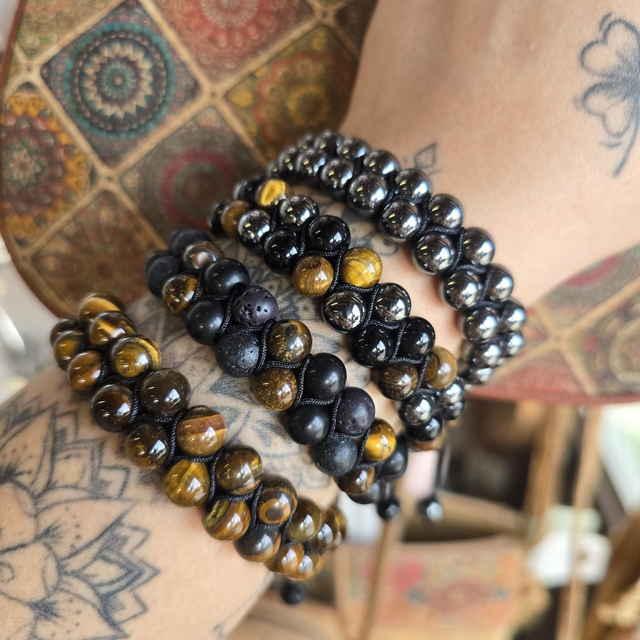 Bracelet "Mirko" style shamballa n°3 (lave,onyx mat& oeil tigre)