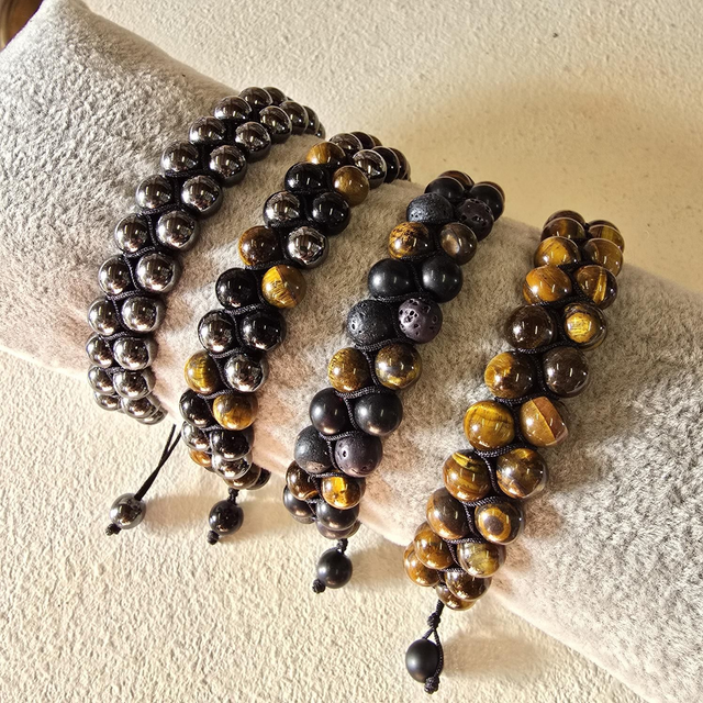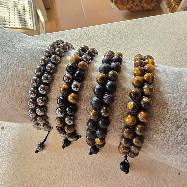 Bracelet "Mirko" en perles semi-précieuses 2 rangs (divers mix au choix)