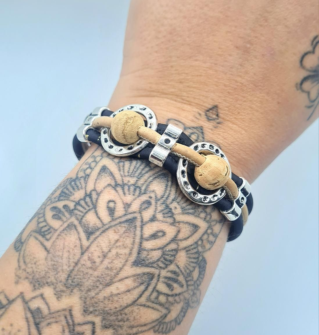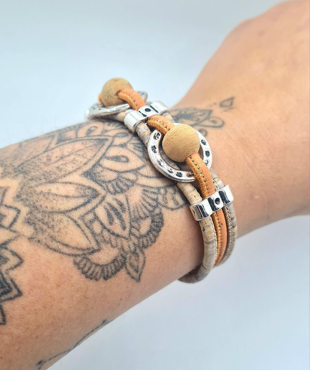 Bracelet "Munich" en liège bicolore et perles de liège naturel