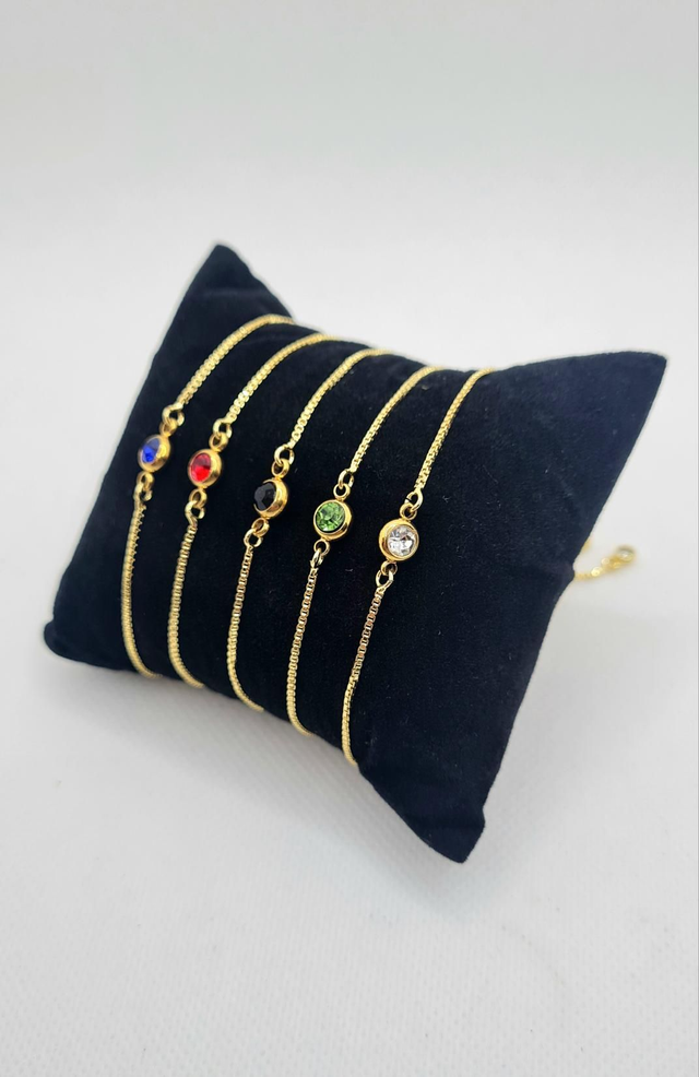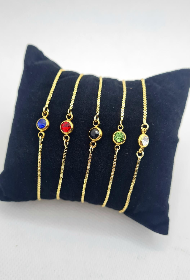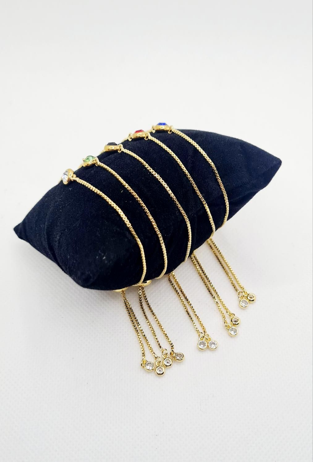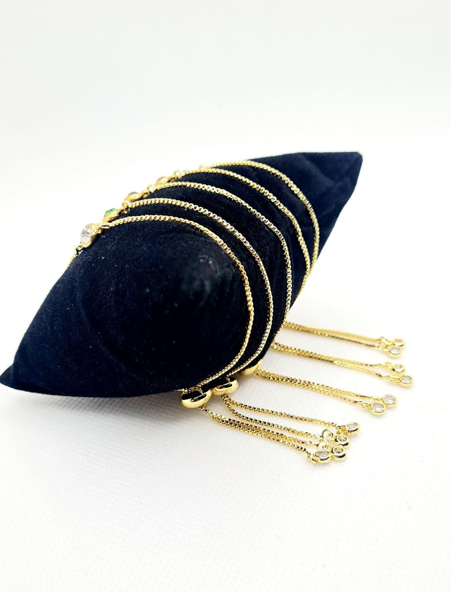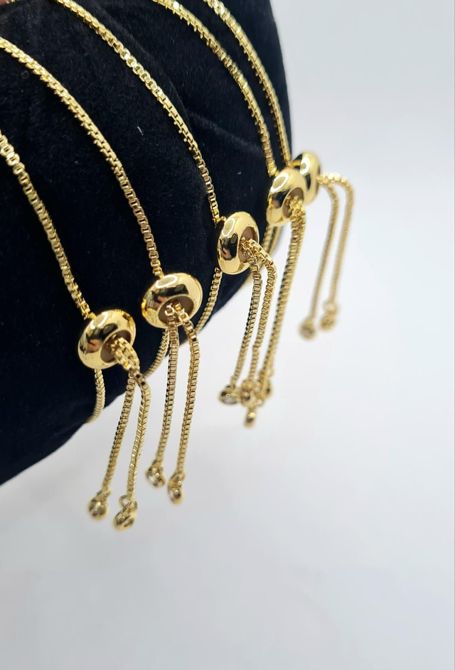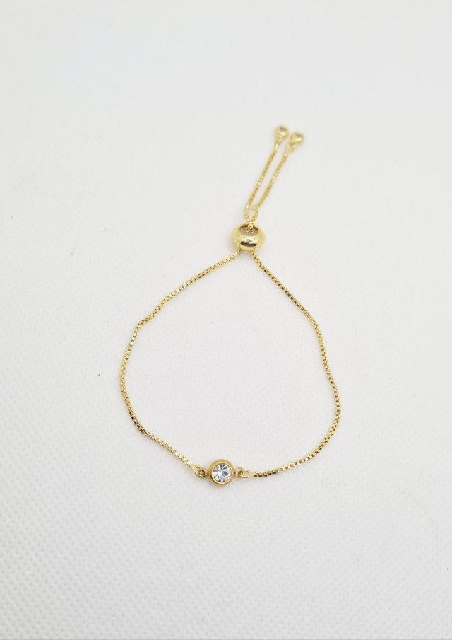 Bracelet "Noiva" en acier inoxydable or avec strass, réglable à coulisse