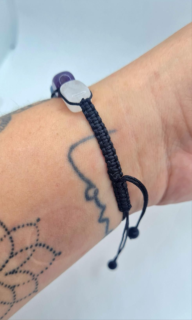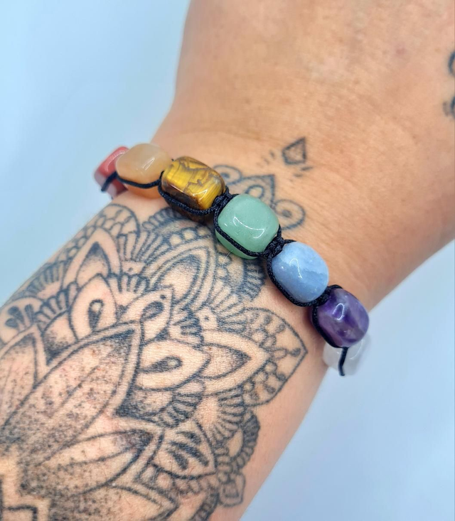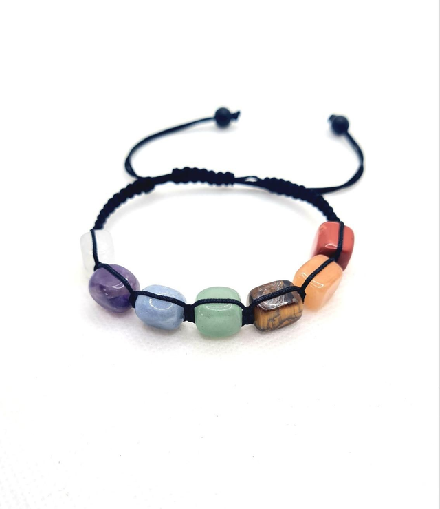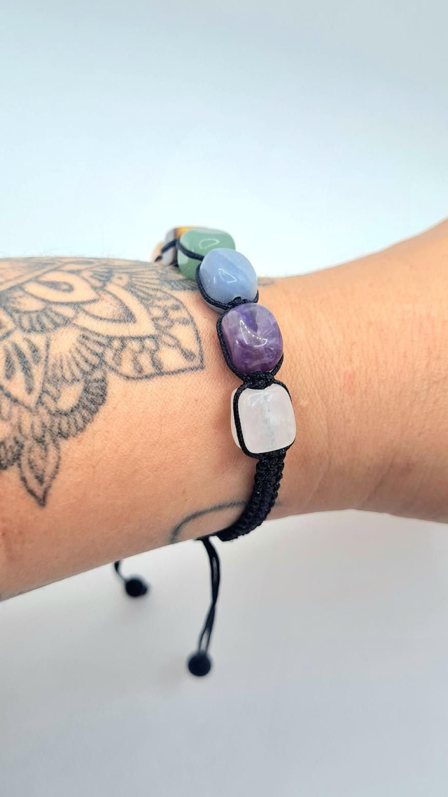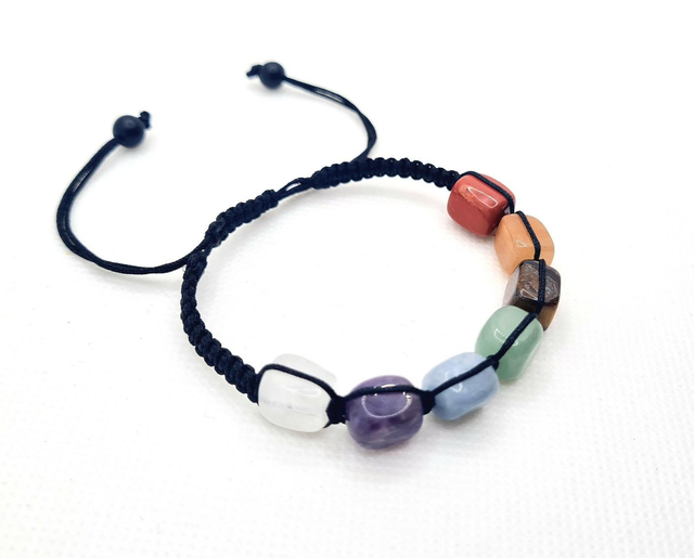 Bracelet réglable "7 chakras "type shamballa", cordon en nylon satiné