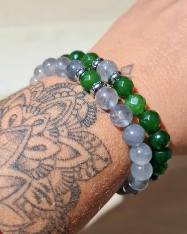 Bracelet DUO agate verte et quartz gris fumé