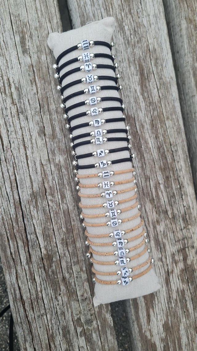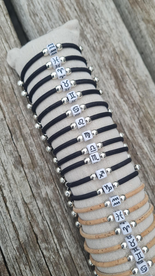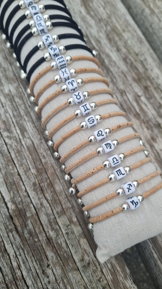 Bracelets réglables en liège naturel ou noir "Zodiac"