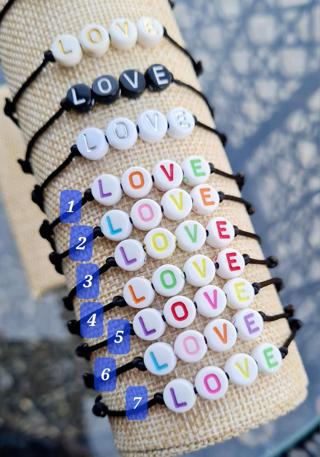 Bracelet réglable Love lettrage color mix sur blanc n°6
