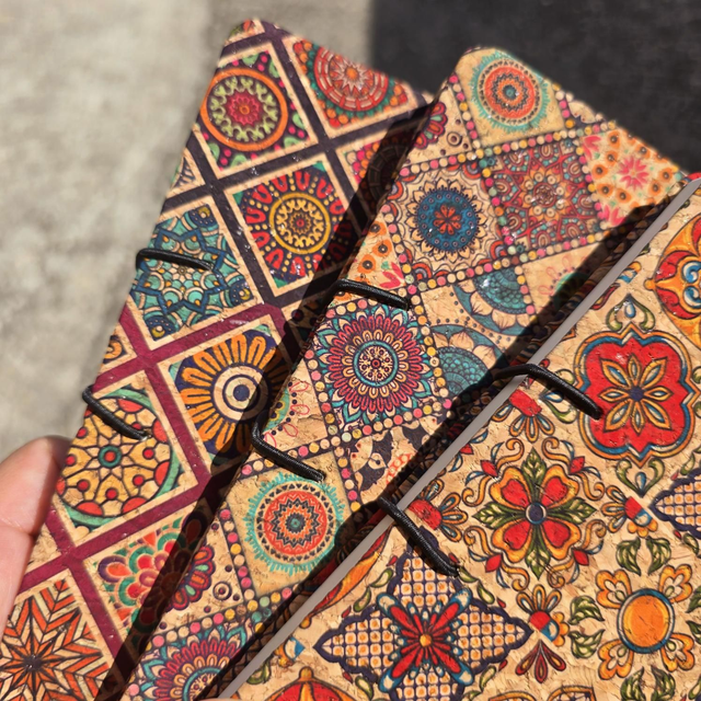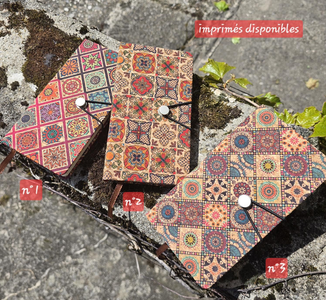 Carnet de notes journalier/agenda "Adria" allongé fourré de liège imprimé (3 à choix!)