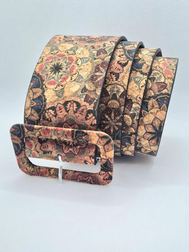 Ceinture épaisse en liège naturel et imprimé mandalas taille unique