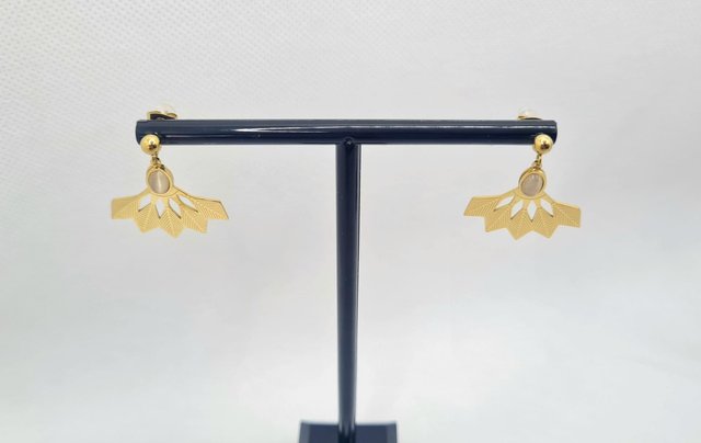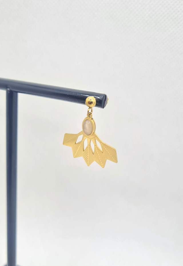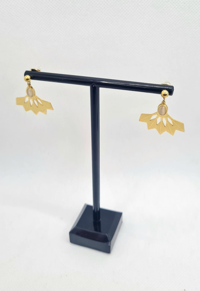 Clous d'oreilles "Apache" en acier doré et demi/cabochon ovale