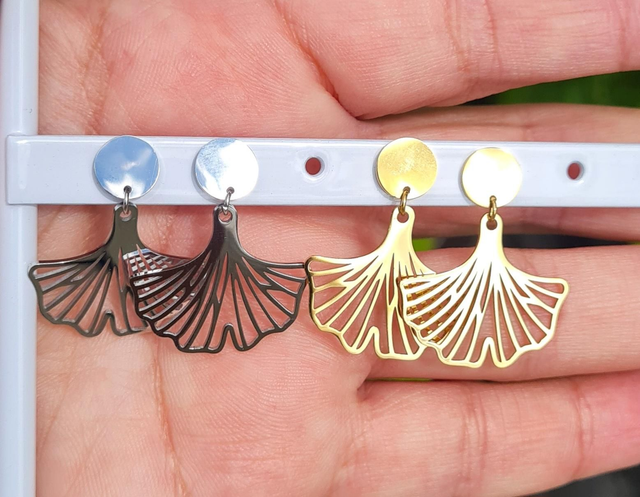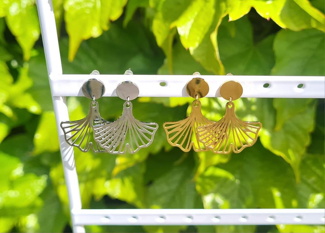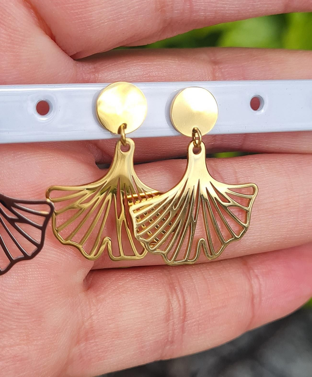 Boucles d'oreilles "Dream" acier doré (ginkgo)