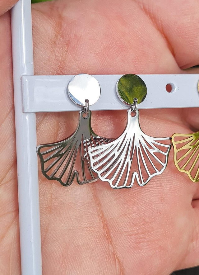 Boucles d'oreilles "Dream" acier argenté (ginkgo)
