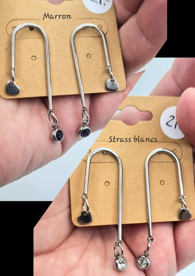 Clous d'oreilles "Jenny" en acier inoxydable argent + strass (coloris à choix)
