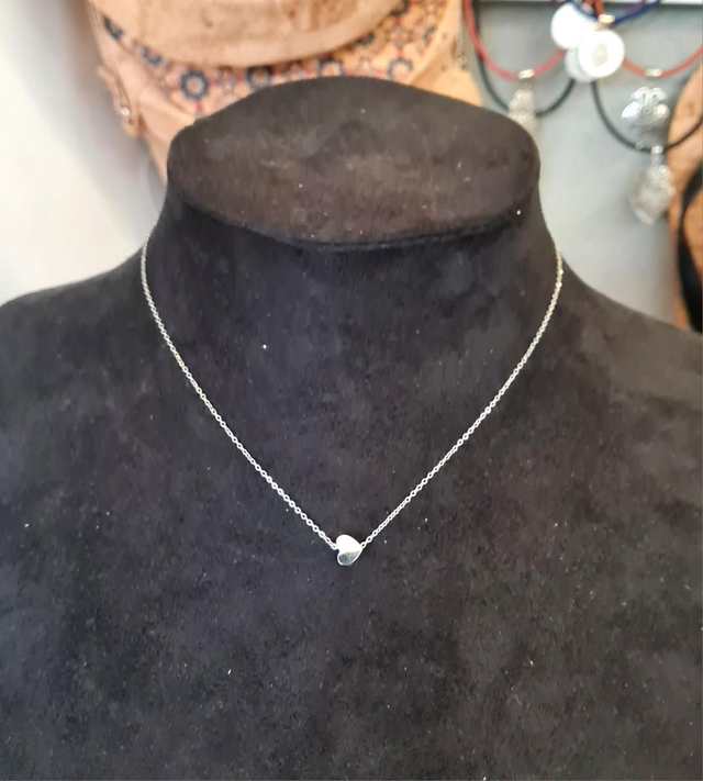 Collier en acier inoxydable argent avec petit cœur couché