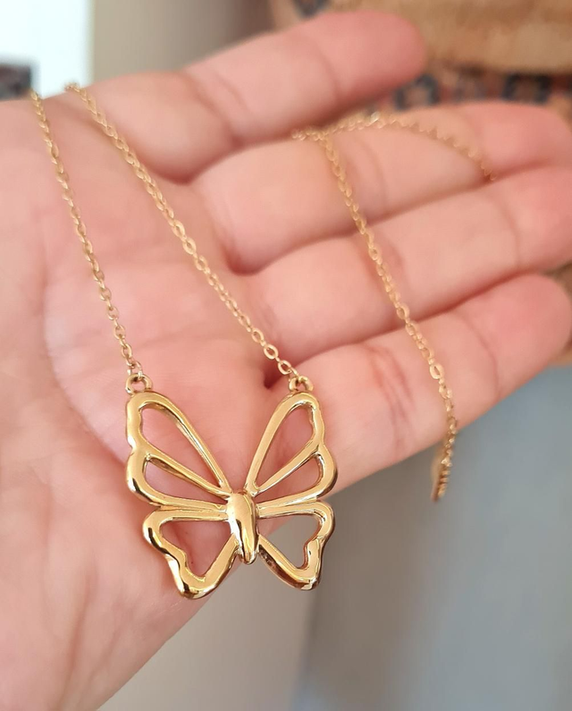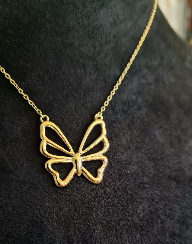 Collier "Flavie" en acier inoxydable doré avec grand pendentif libellule