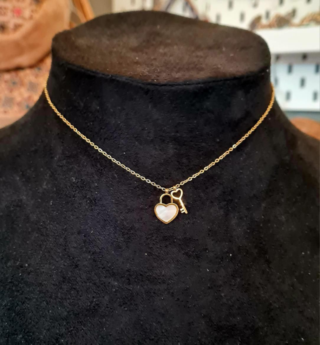 Collier en acier inoxydable or "Coeur à prendre" Nacre