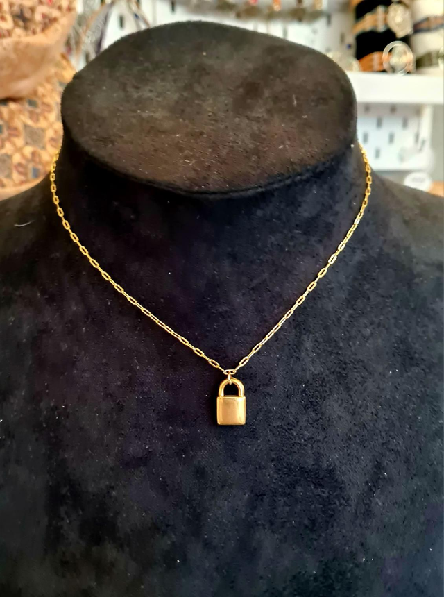Collier en acier inoxydable or (grosse maille) avec cadenas