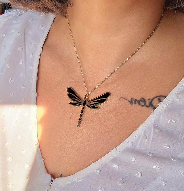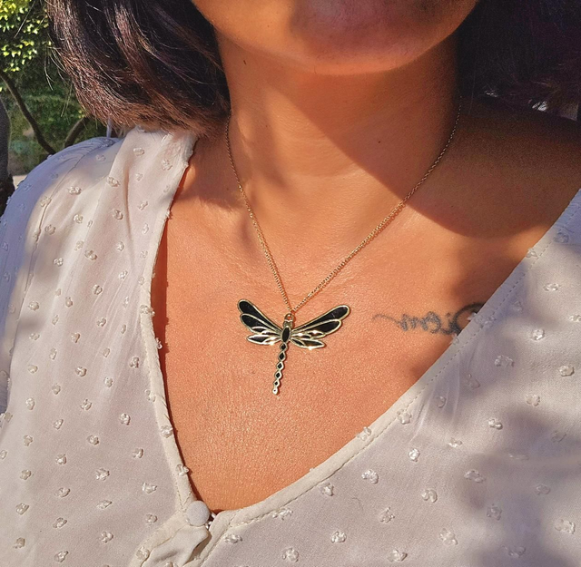 Collier "Flavie" en acier inoxydable doré avec grand pendentif libellule