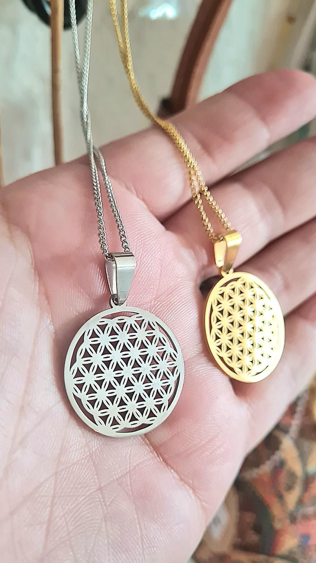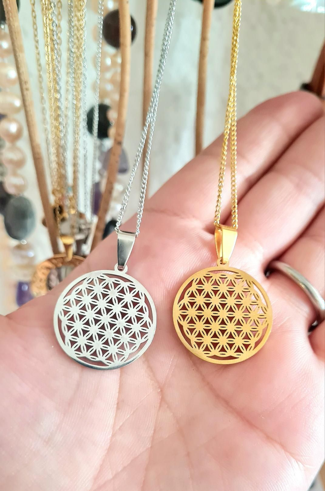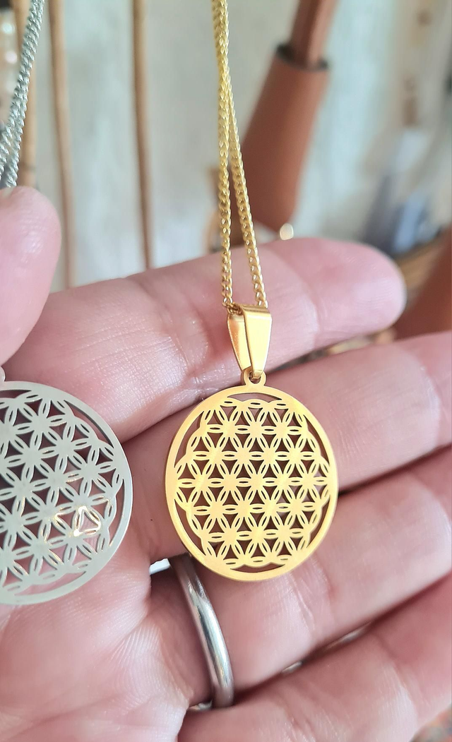 Collier Fleur de vie acier doré