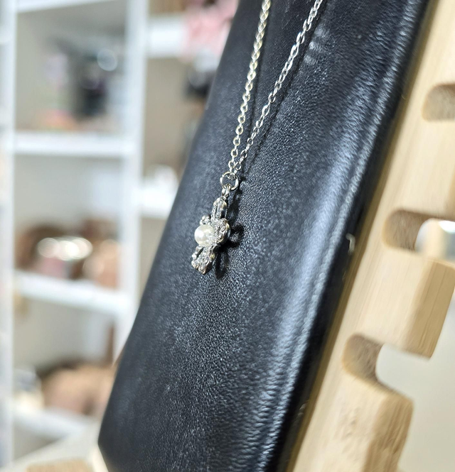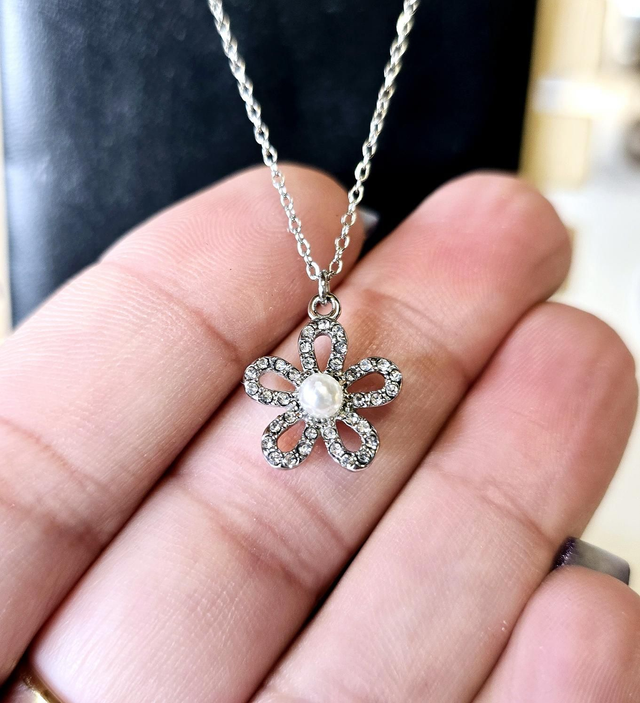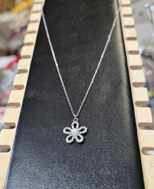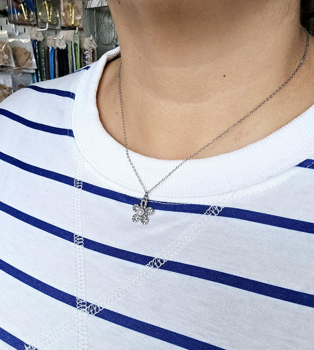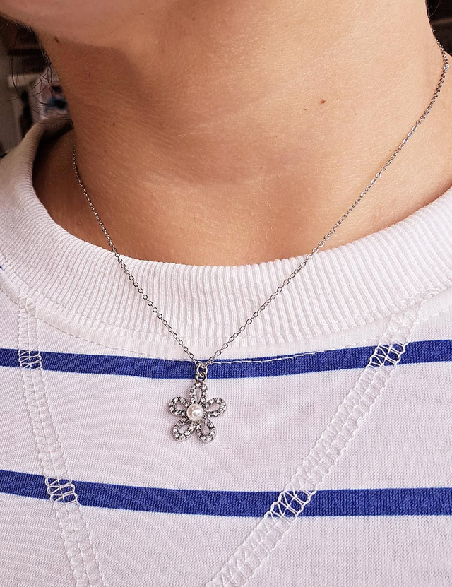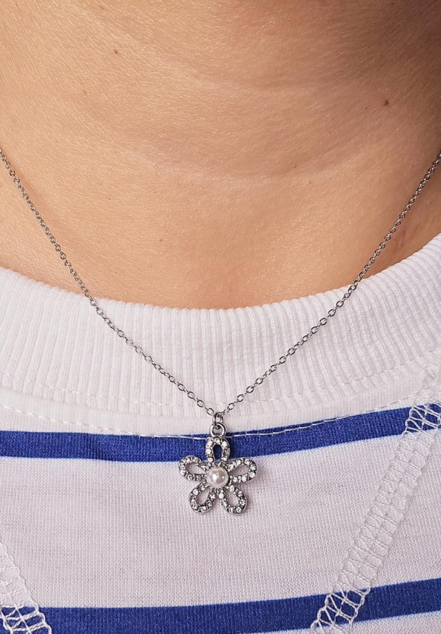 Collier "Lilly" en acier inoxydable argenté et fleur en zircons