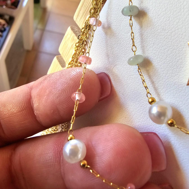 Collier Lola en acier inoxydable or perlé (à choix)
