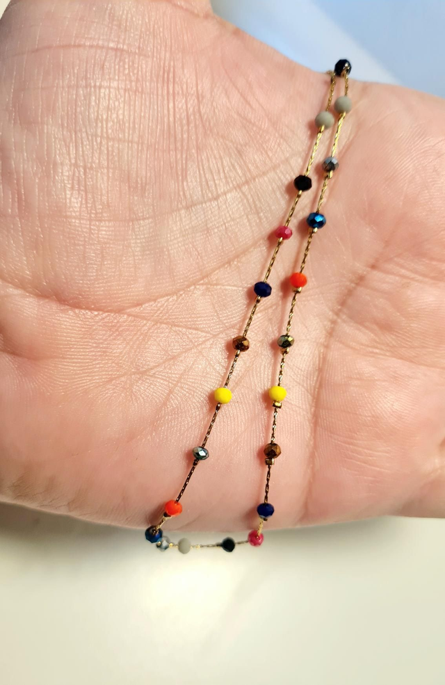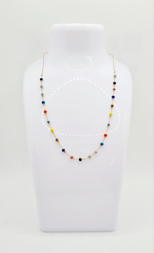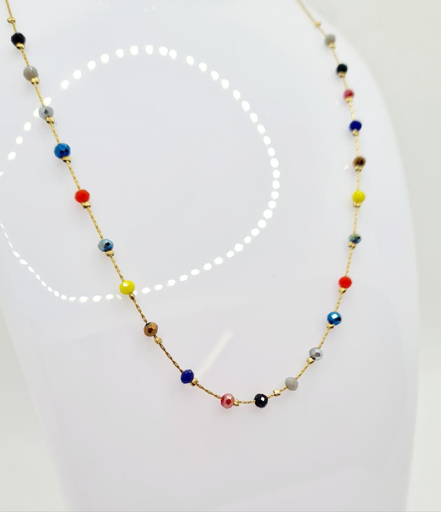 Collier "Maddie" en acier inoxydable or et petites perles facettées et colorées