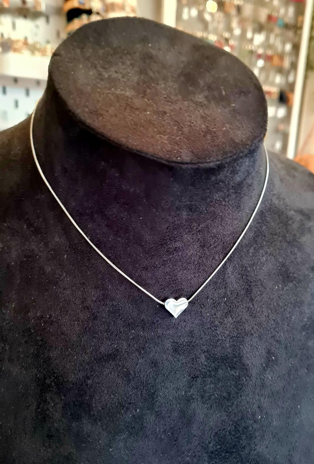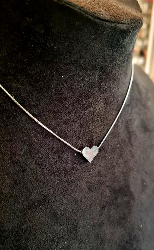 Collier maille serpent en acier inoxydable argent avec coeur