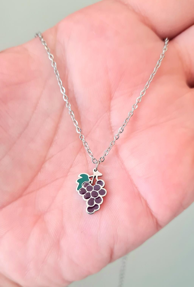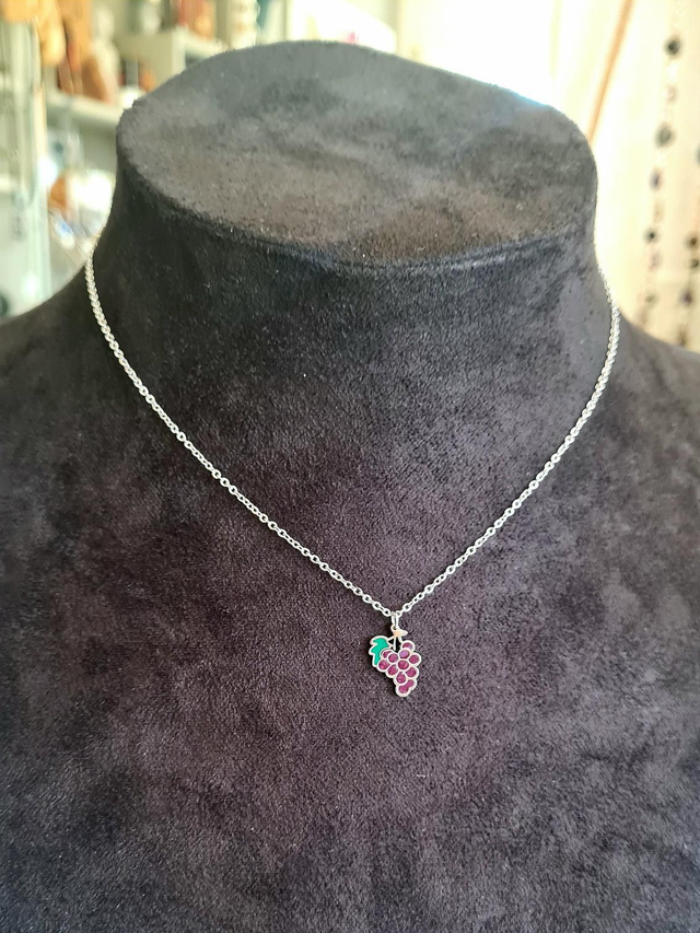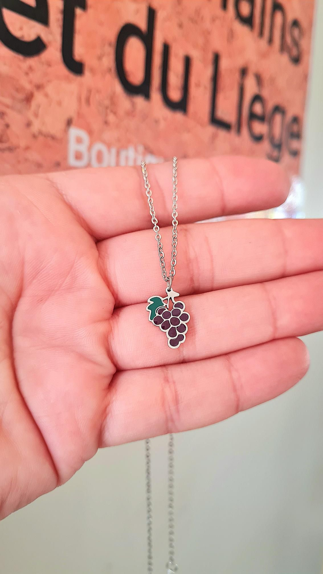 Collier "Millésime" en acier inoxydable argenté + grappe de raisin
