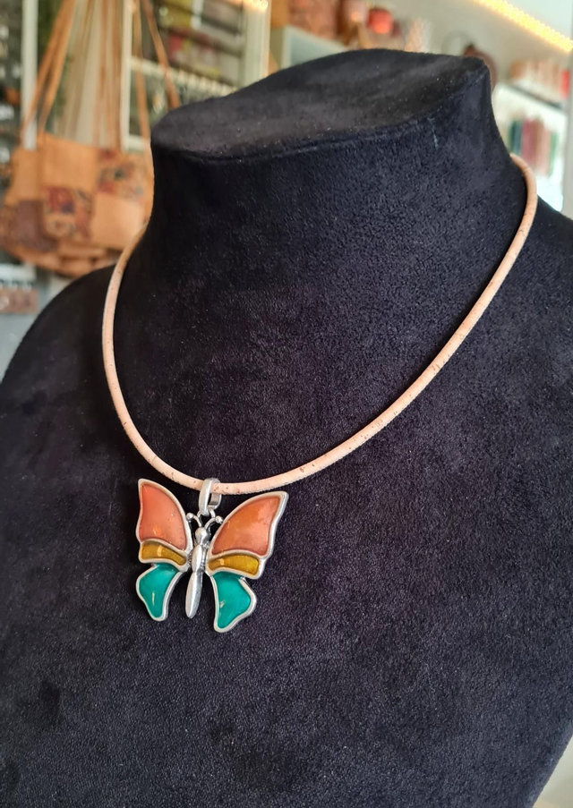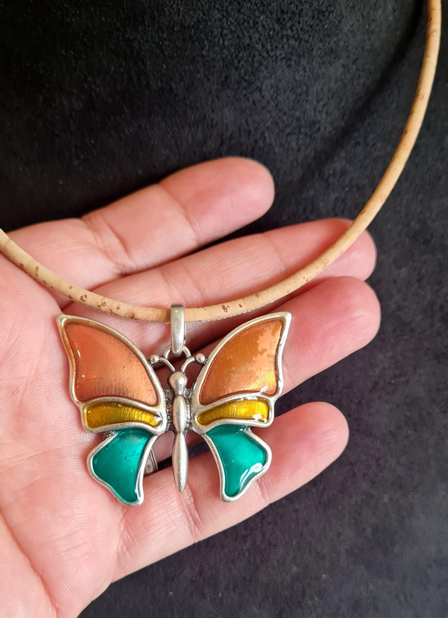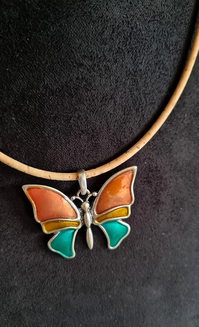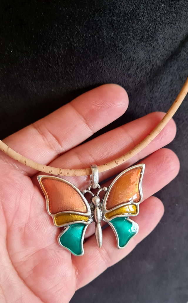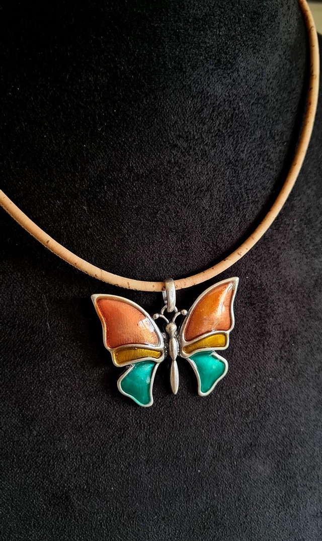 Collier "Primavera" avec papillon coloré et cordon en liège naturel