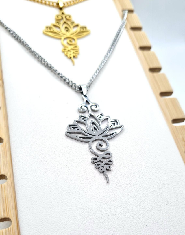 Collier "Unalome" en acier inoxydable or ou argent