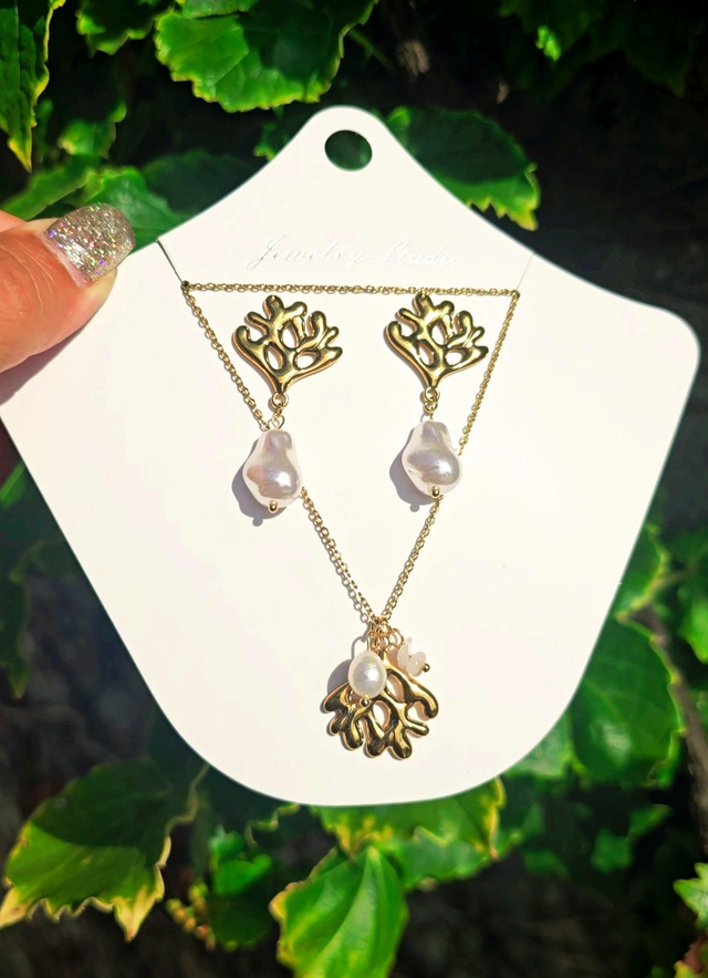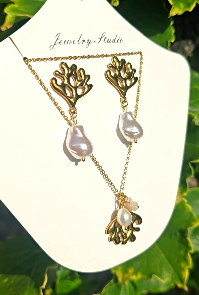 Long sautoir "Sariah" cordon en liège teinté rose bébé fin, perles en céramique aux tons de vert/rose et gros pendentif "coeur" creux