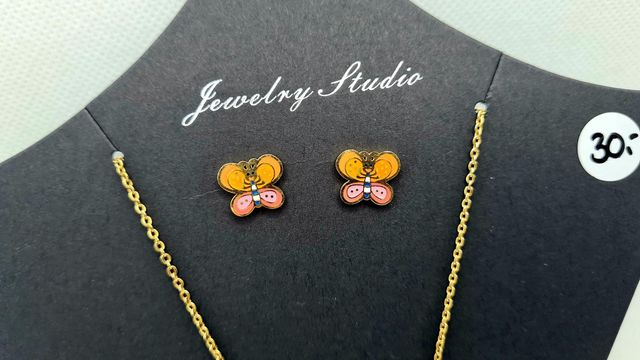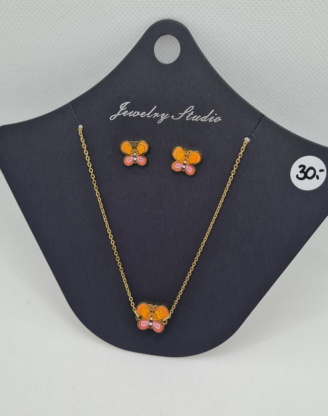 Parure duo "Betty" en acier inoxydable or ( clous d'oreilles + collier assorti)