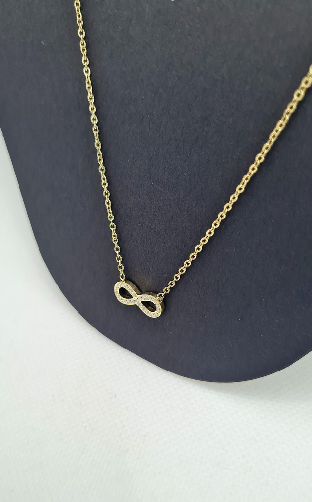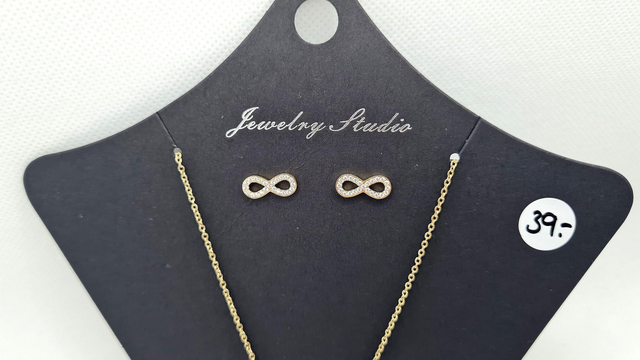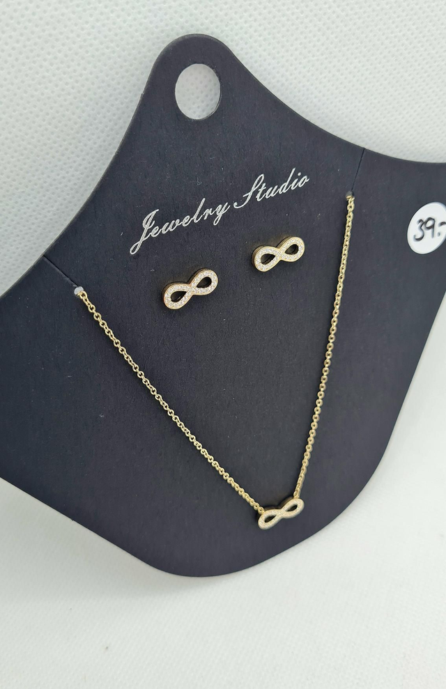 Parure duo "Forever" en acier inoxydable or et zircons (clous + collier assorti)