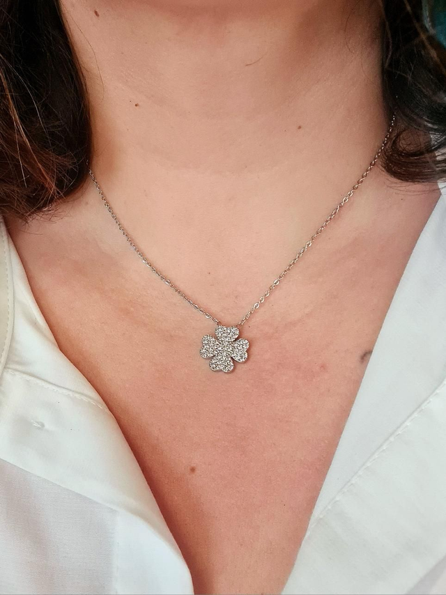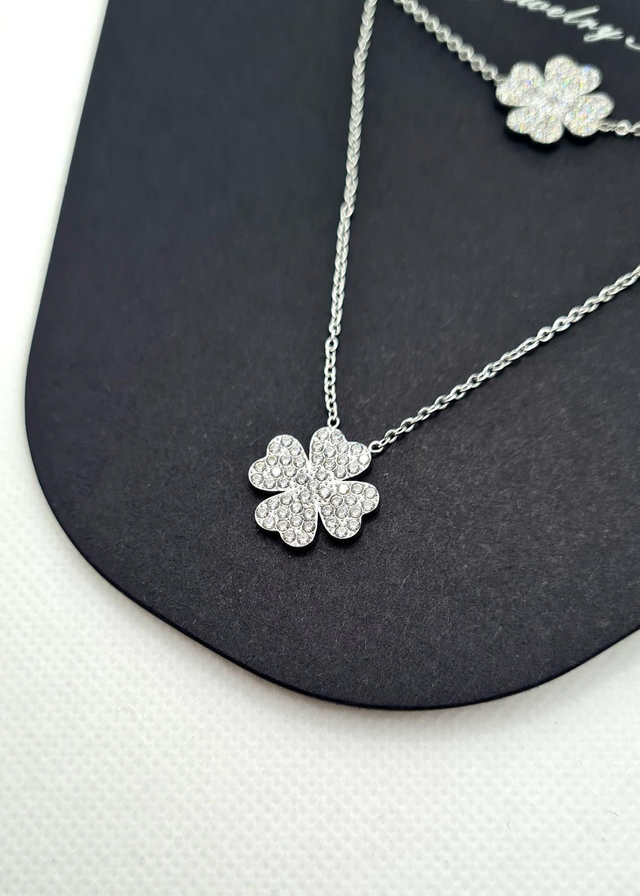 Parure duo "Lucky" en acier inoxydable arg. (brac. + collier)