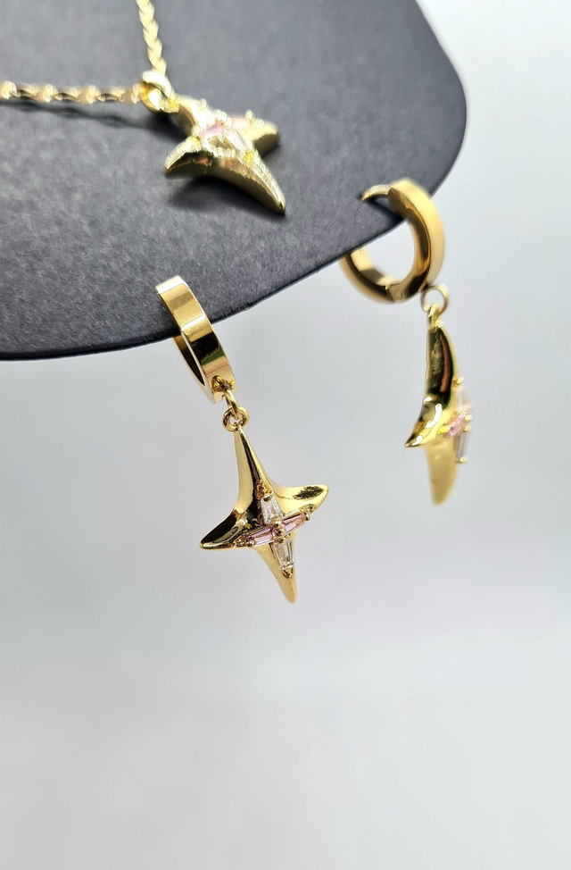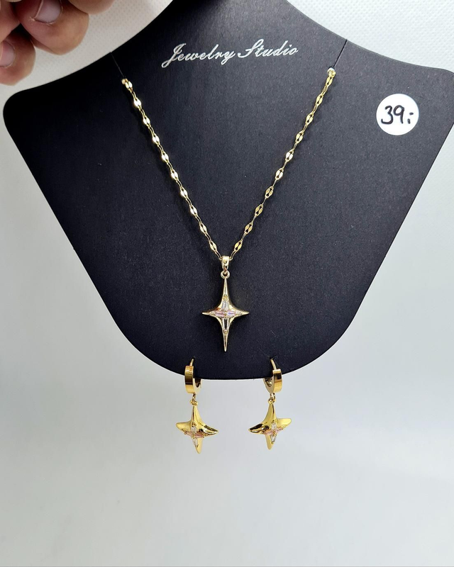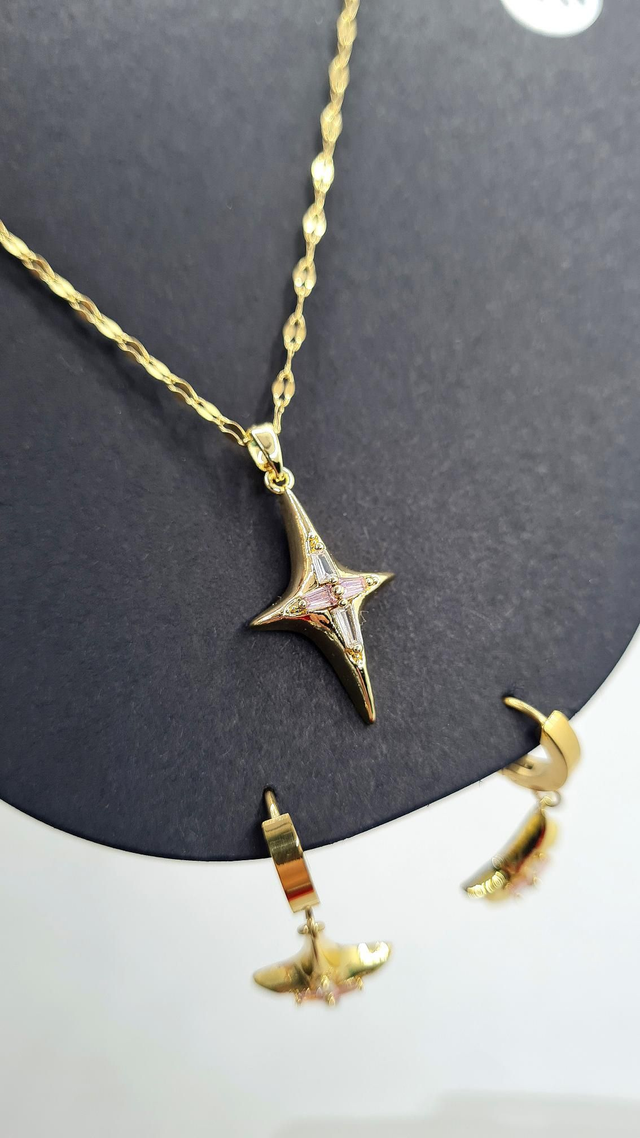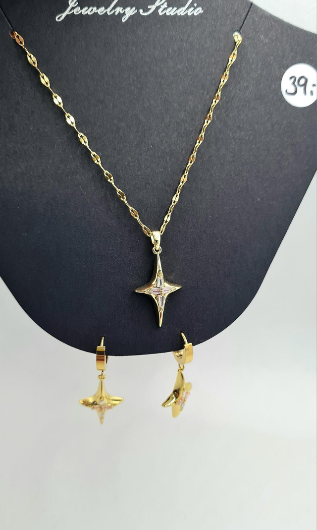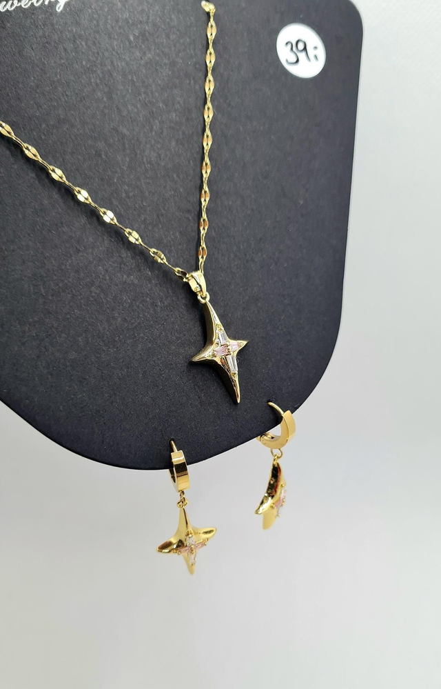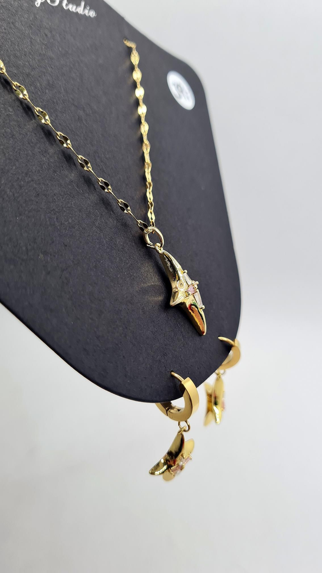 Parure duo "Tessa" en acier inoxydable or (b-o + collier assorti)