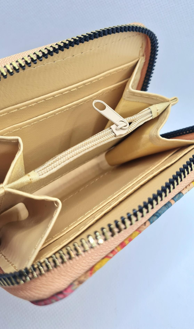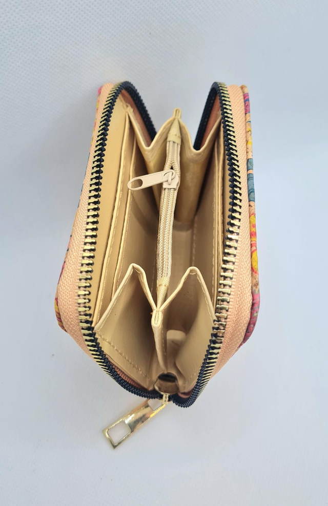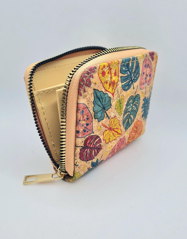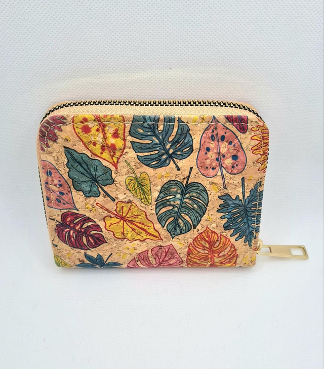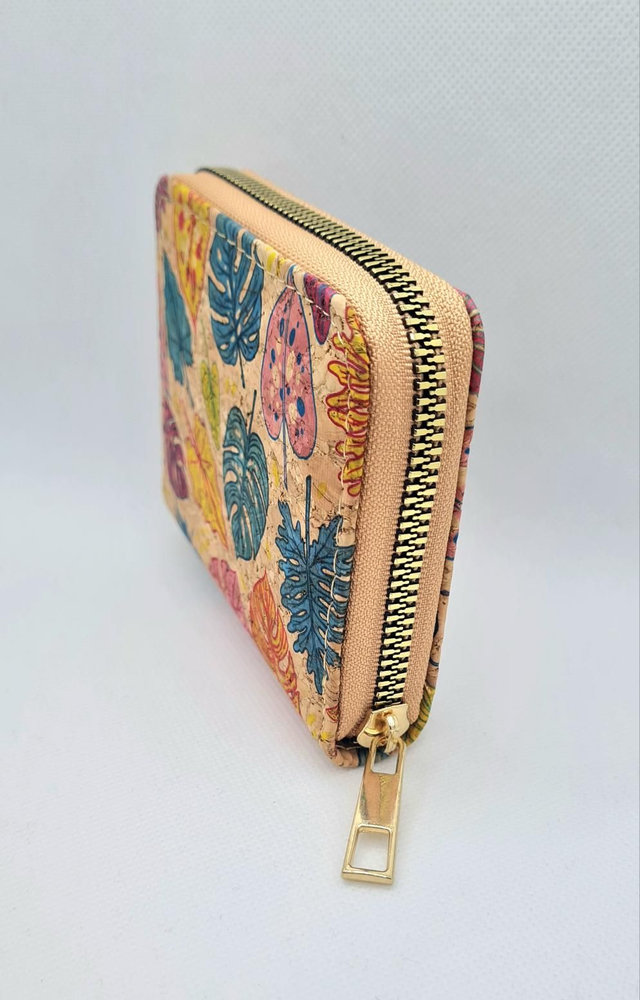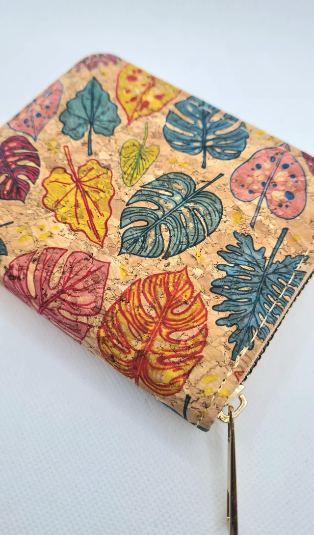 Petit porte-monnaie en liège imprimé "monstera" colorées avec fermeture zip