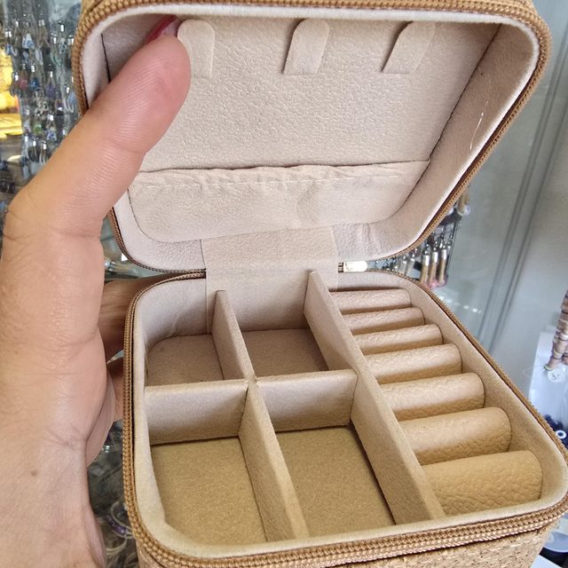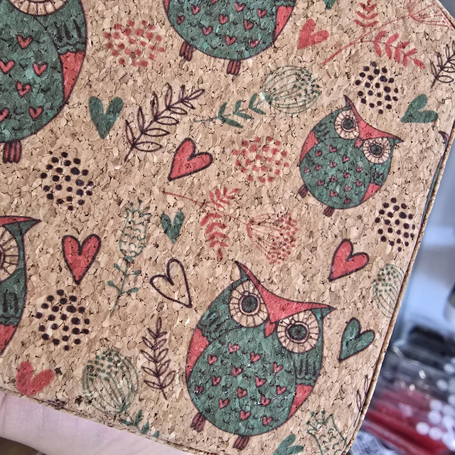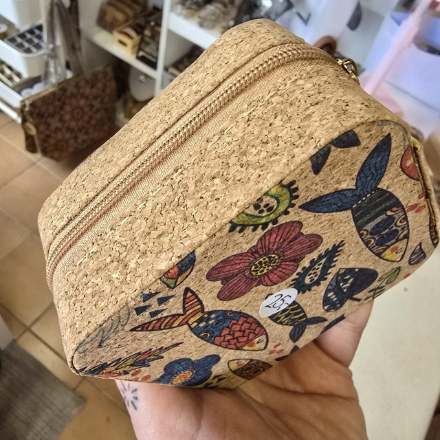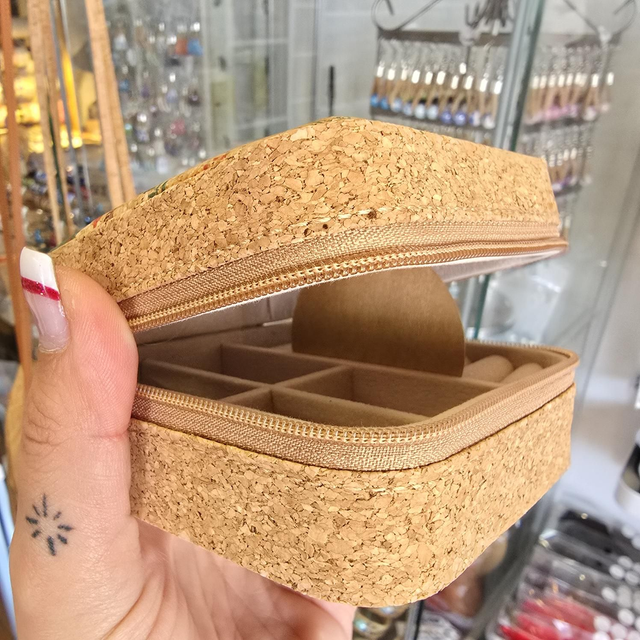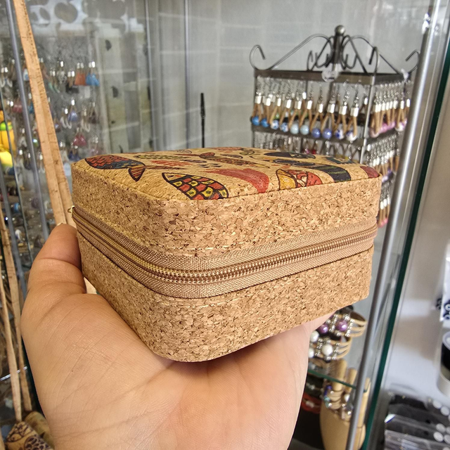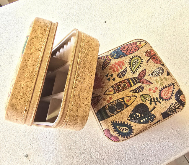Petites boîtes à bijoux de voyage fourré de tissu en liège naturel et imprimé sardines ou hiboux (à choix)