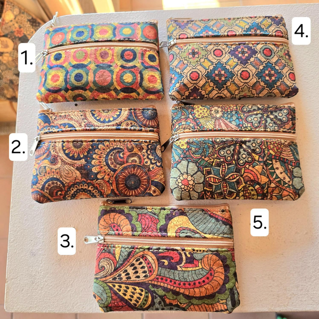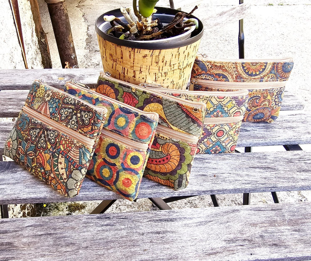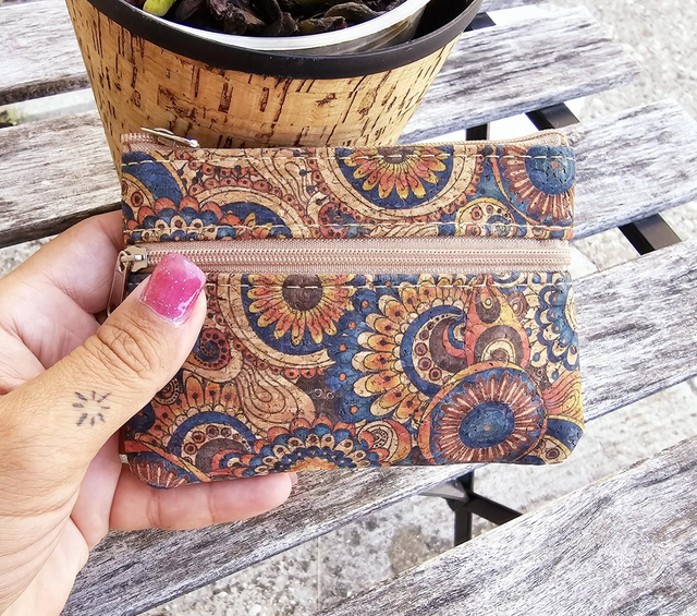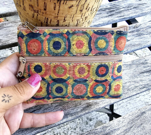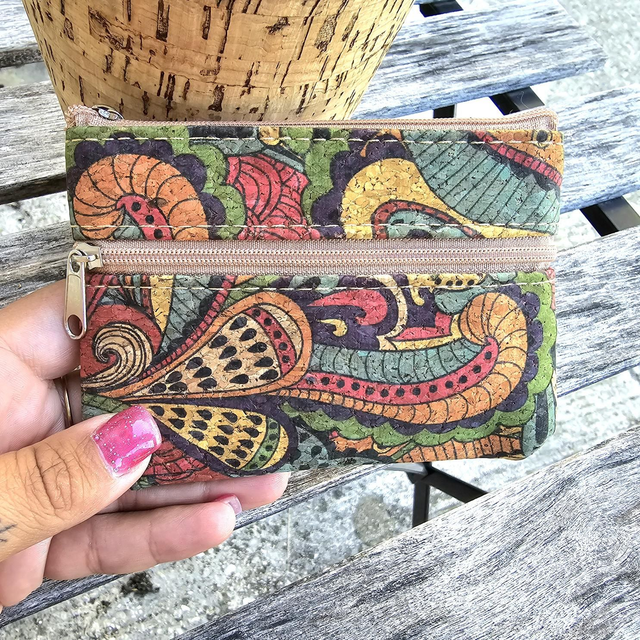 Petits porte-pièces "Pipa" en liège imprimé avec 2 poches zip