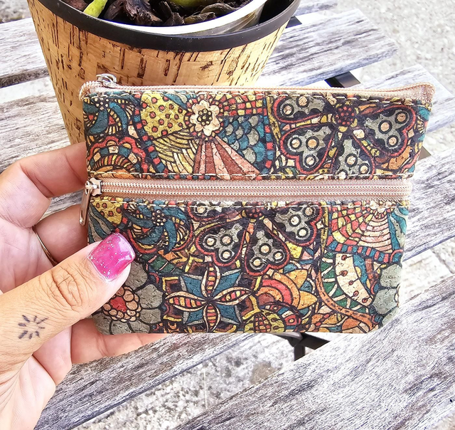 Porte-pièces "Pipa" en liège imprimé n°2 (2 poches zip)