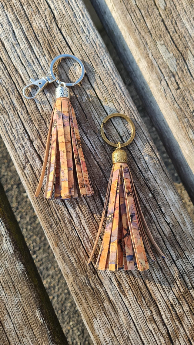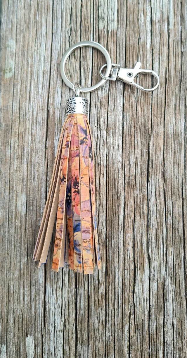 Porte-clés frange en liège imprimé avec capuchon en métal