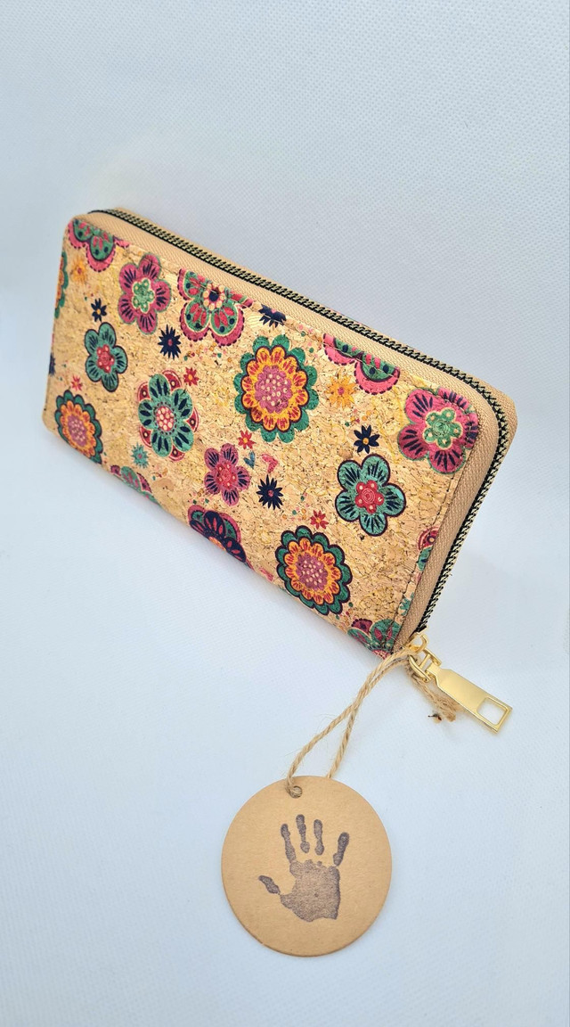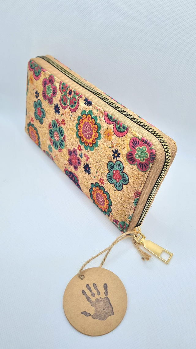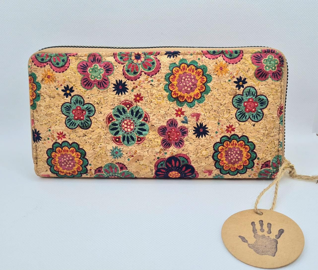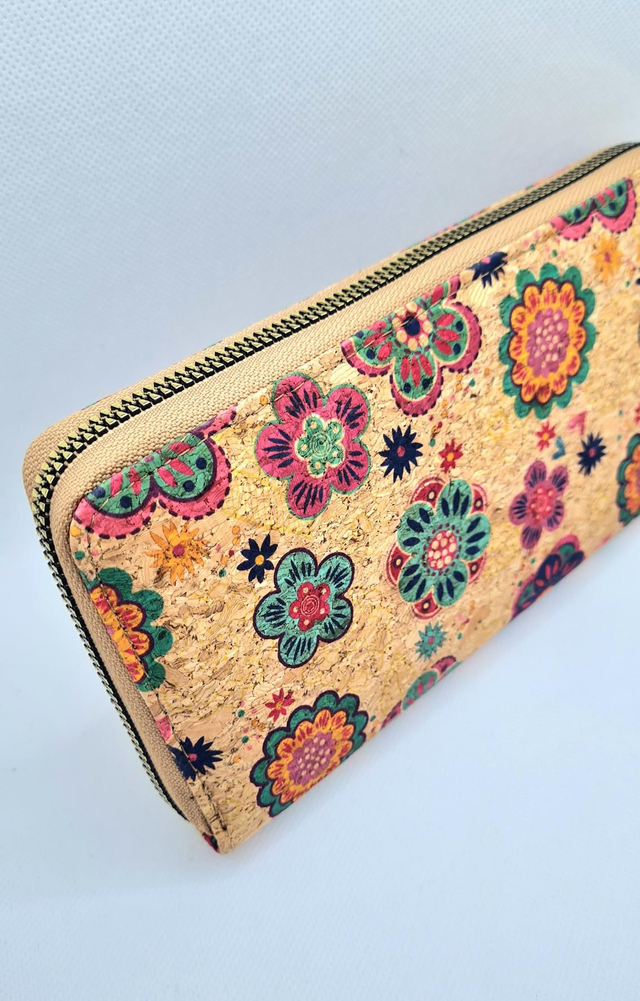 Porte-monnaie "Fanny" en liège imprimé fleurs colorées