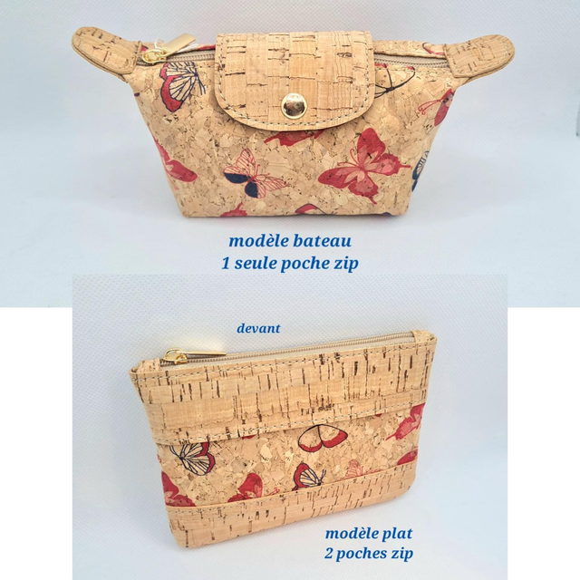 Porte-monnaie"Monarque" en tissu de liège naturel et imprimé papillons (2 modèles à choix)