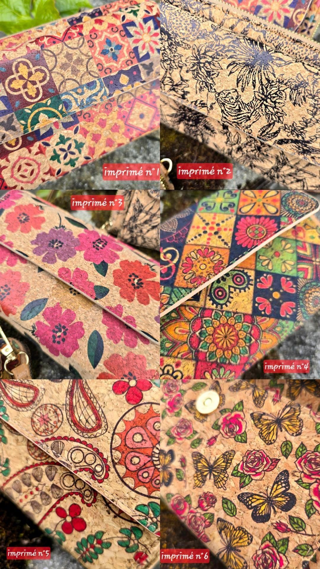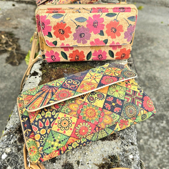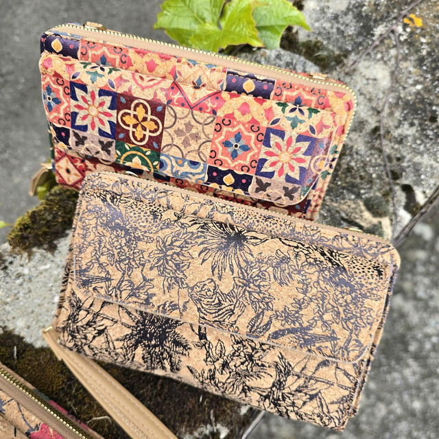 Porte-monnaie/pochette "Ashley" pour natel 2en1 en liège imprimé (bandoulière amovible)