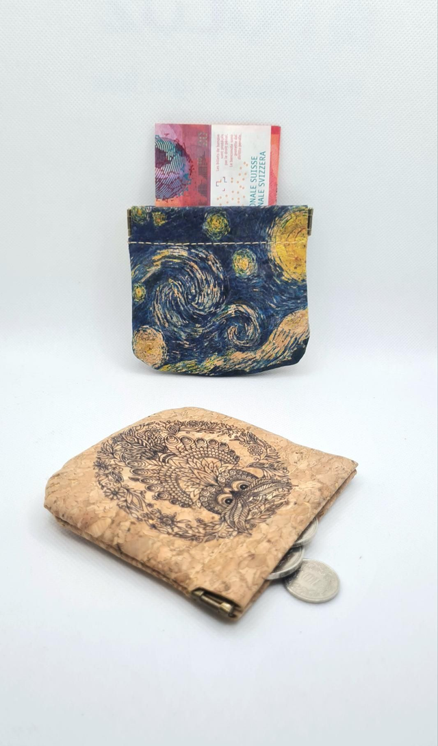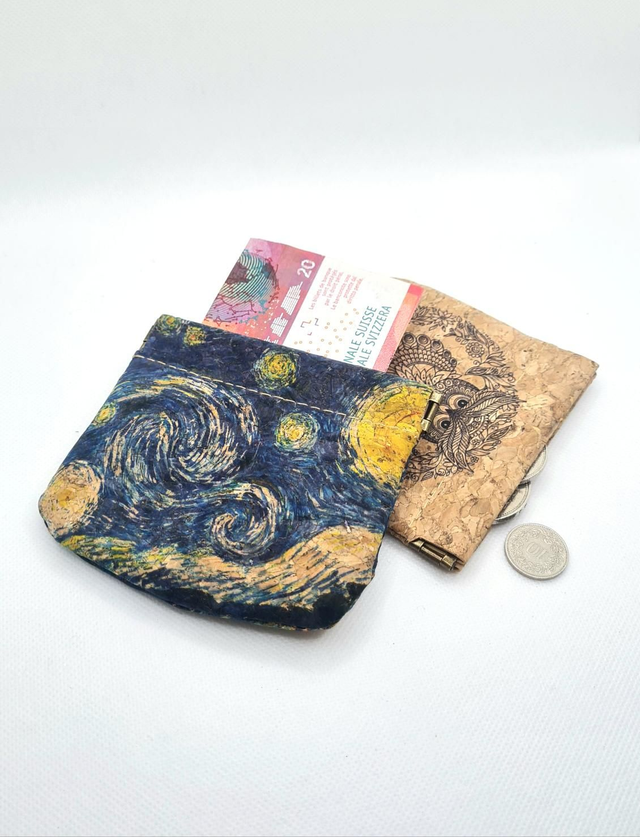 Porte-pièces en tissu de liège imprimé nuit étoilée (Van Gogh)