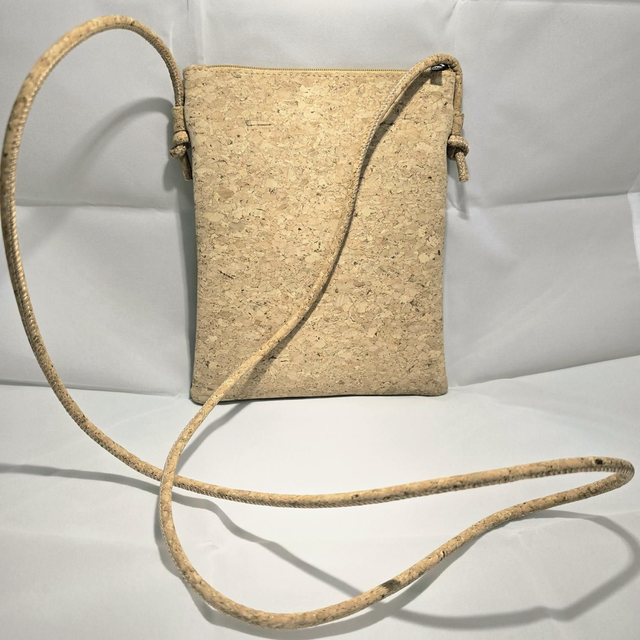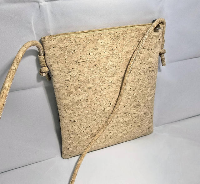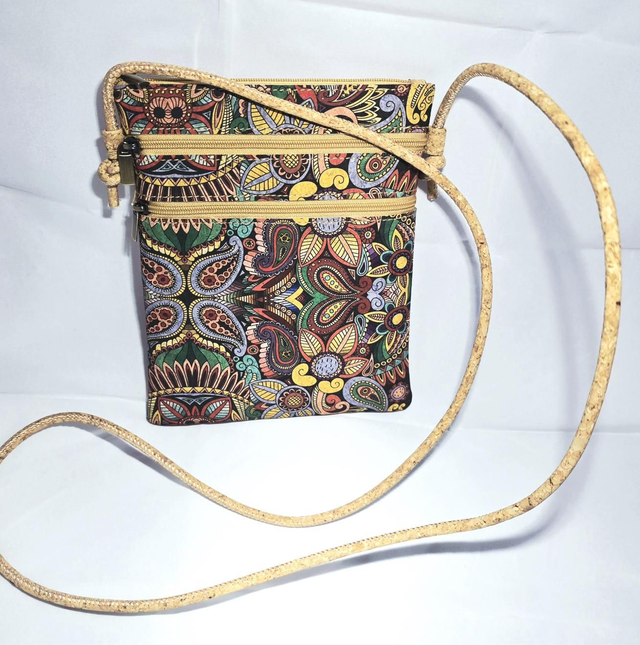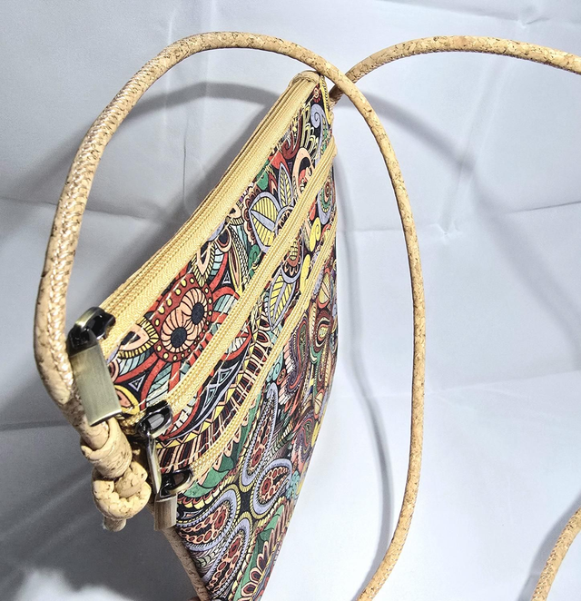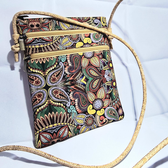 Sac à bandoulière 3 poches zip en liège inprimé (devant) et naturel (arrière)