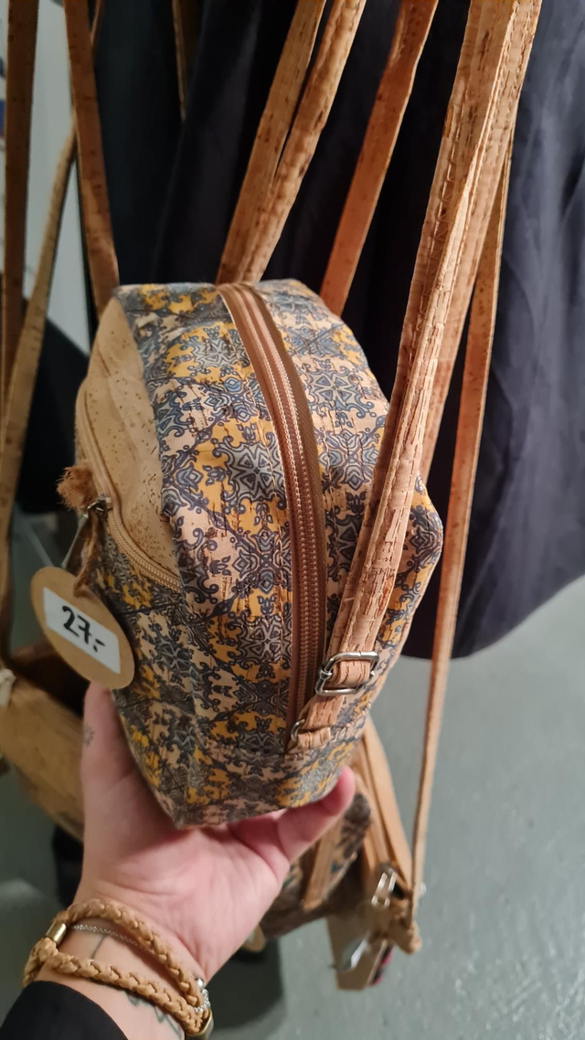 Sac à bandoulière réglable en liège naturel/coloré et imprimé carreaux