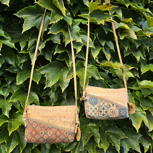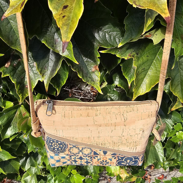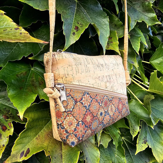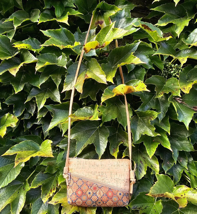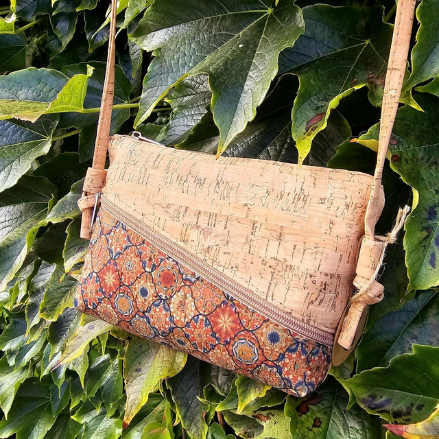 Sac à bandoulière "Zazie" en tissu de liège naturel et imprimé