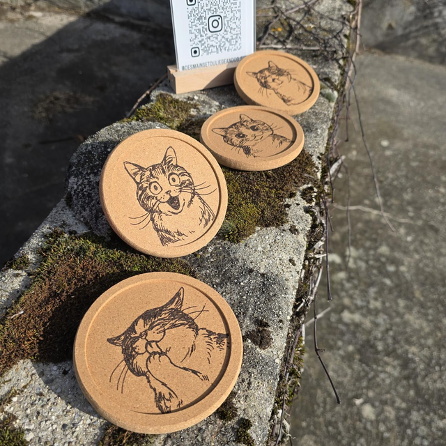 Sous-verres en liège "Kitty" (lot de 4)