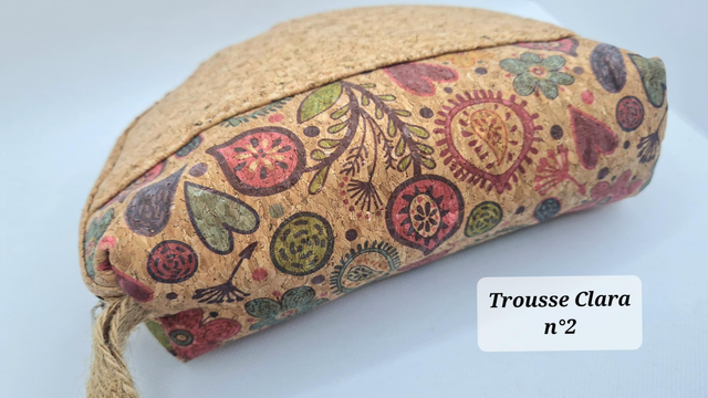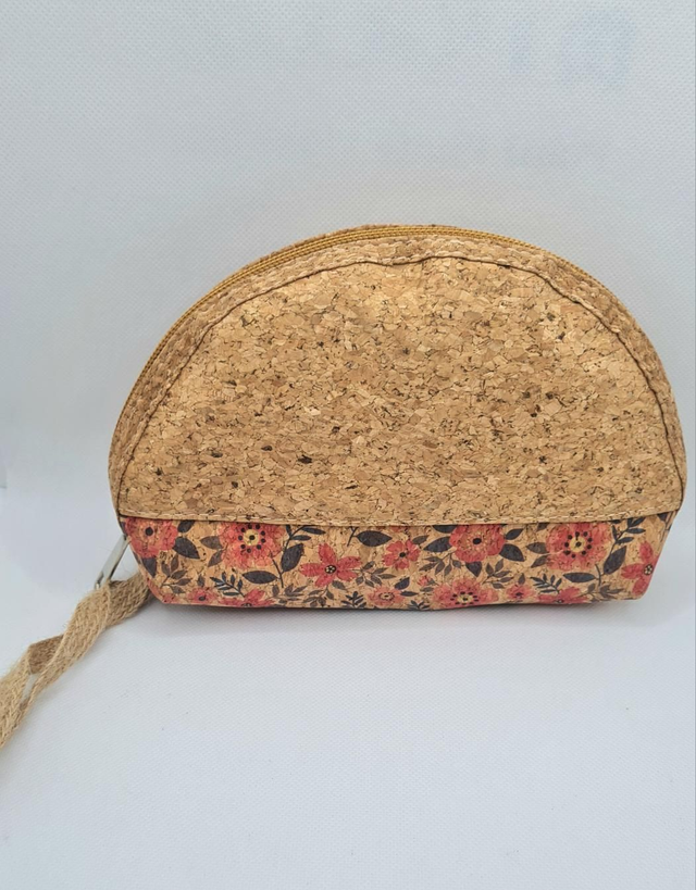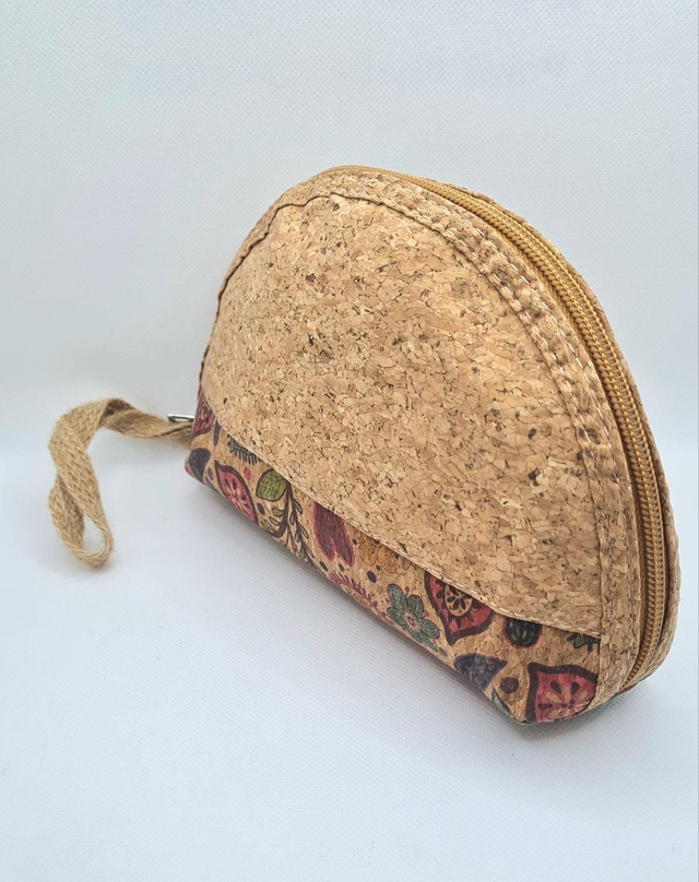 Trousse de toilette arrondie en liège naturel et imprimé avec fermeture éclair "Clara"