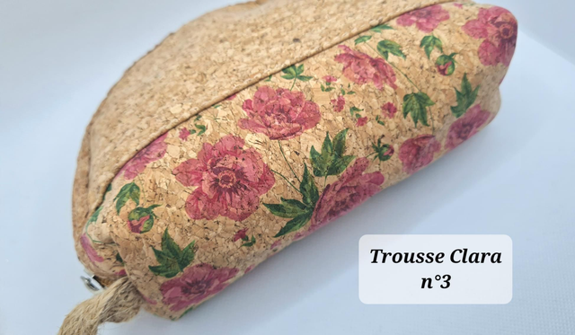 Trousse de toilette "Clara" en liège naturel et impr. fleurs n°3